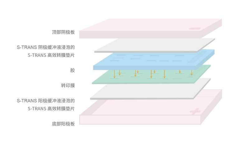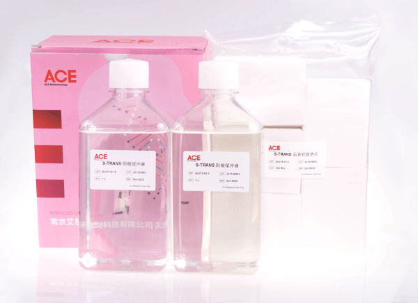 电转印是许多研究和诊断实验室常用的技术。传统湿式转印配制试剂以及转印过程需要消耗大量时间,通常需要一个半小时以上。ACE 公司的 S-TRANS 快速多通道半干转印仪在保证性能的情况下,大大缩短了蛋白转印时间。使用 S-TRANS 快速多通道半干转印仪,转印时间最快缩短到 5 min,配套的转印缓冲液提供了较高的转印效率和重现性。S-TRANS 转印系统由主机、半干式转印盒、两极缓冲液和吸水介质组成;