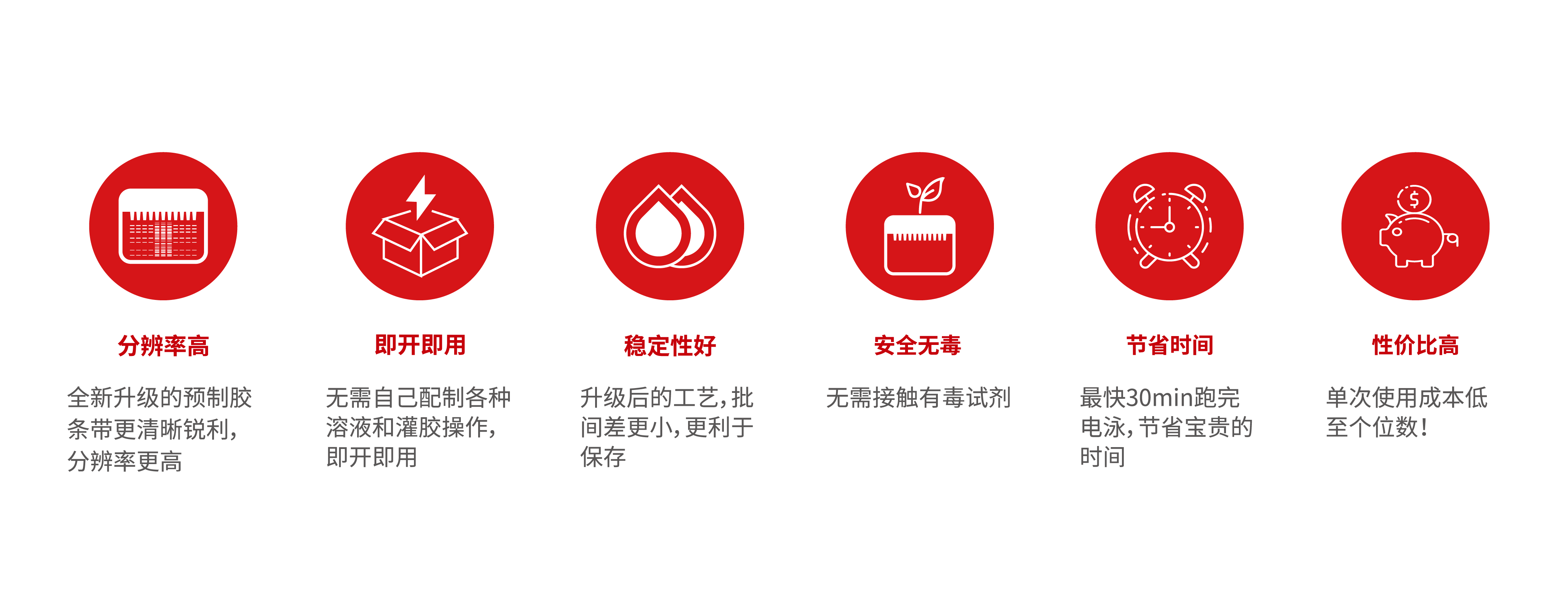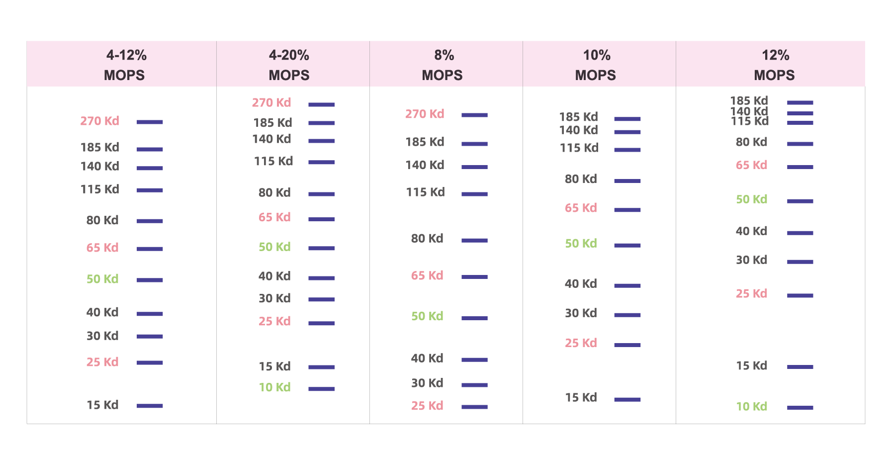 本产品为聚丙烯酰胺电泳凝胶,用于蛋白质分离,单片胶为 10孔、12 孔或 15孔,10孔胶每孔最大上样量为70 μL,推荐上样量35 μL以下;12 孔胶每孔最大上样量为 50 μL,推荐上样量 25 μL 以下;15 孔胶每孔最大上样量为 30 μL,推荐上样量 15 μL 以下。