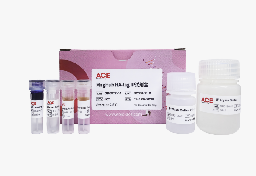MagHub HAtag IP 试剂盒专为免疫沉淀(IP)及免疫共沉淀(CoIP)等蛋白互作研究而设计。该试剂盒以聚合物磁性微球为核心,配套完整的专用缓冲体系,可直接用于蛋白互作实验。微球表面共价键合了高浓度的抗HA标签纳米抗体(VHH),能够特异性从哺乳动物、植物、细菌、酵母、昆虫等多种来源的细胞裂解液中高效富集HA标签融合蛋白。该体系具有非特异性吸附低、结合载量高、无抗体轻重链干扰等优势,可显著提升目的蛋白的富集效率与检测信噪比,适用于蛋白质相互作用、表达鉴定、功能分析等下游研究。