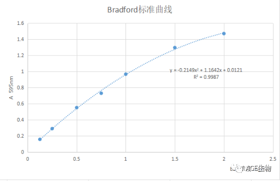 考马斯亮蓝G250染料结合法首次由Marion Bardford博士在1976年提出,因此也叫Bradford法,原理是蛋白在酸性条件下和考马斯染料结合,染料的最大吸收值发生改变,从465nm转移为610nm,并且在595nm处有最大的吸收差异。结合到蛋白质分子上的染料数与蛋白所带正电荷成正比,因此可以用该方法来对蛋白进行定量。染料的颜色变化和蛋白中的碱性氨基酸(精氨酸、赖氨酸和组氨酸)有关,另外范德华力和疏水作用也会影响蛋白与染料的结合。
