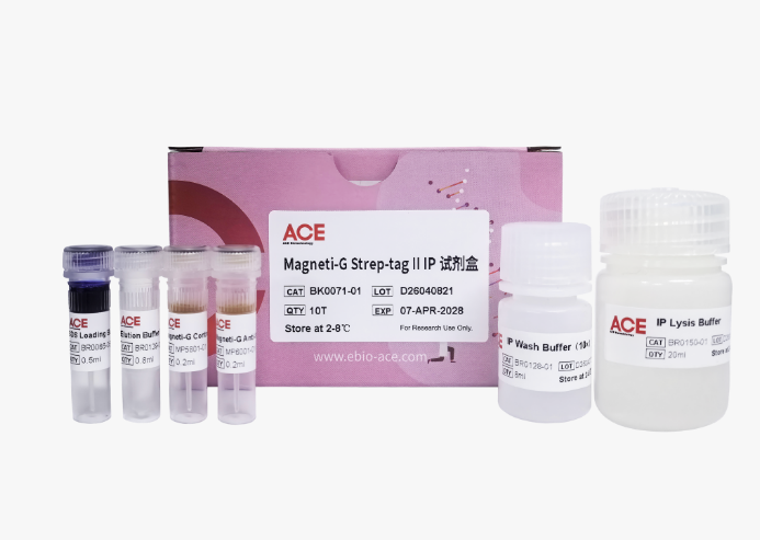 Magneti-G Strep-tag II IP试剂盒专为免疫沉淀(IP)及免疫共沉淀(CoIP)等蛋白互作研究而设计。该试剂盒以聚合物磁性微球为核心,配套完整的专用缓冲体系,可直接用于蛋白互作实验。微球表面共价键合了高浓度的抗Strep-tag II标签的小鼠IgG抗体,能够特异性从哺乳动物、植物、细菌、酵母、昆虫等多种来源的细胞裂解液中高效富集Strep-tag II和 TwinStrep标签融合蛋白。该体系具有非特异性吸附低、结合载量高、背景干净等优势,可显著提升目的蛋白的富集效率与检测信噪比,适用于蛋白质相互作用、表达鉴定、功能分析等下游研究。