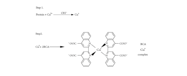 BCA蛋白浓度测定试剂盒是目前世界上最常用的两种蛋白浓度检测方法之一。基本示意图如下: